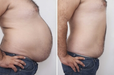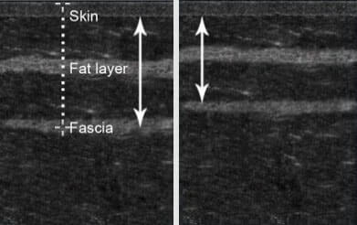 Bilden visar skillnaderna i fettets tjocklek hos försökspersonen före och efter 2 veckors Night Burner-behandling.